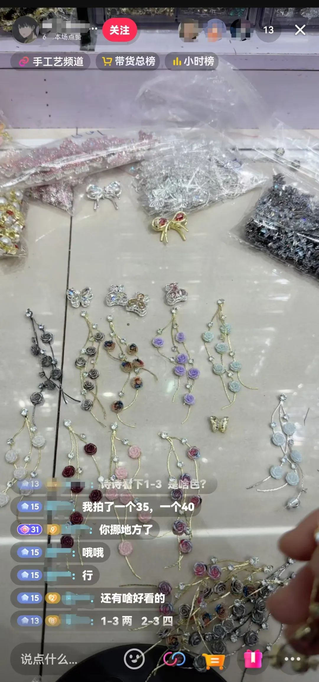 打开Tiktok,有时会被画进系统推荐的直播间。镜头里,五颜六色的diy手机链在地上排列,有很多夸张的装饰。主播没有出现,一边向直播间的观众介绍一边展示商品。观众在公共屏幕上留言想看什么样式,说什么就选什么。看完之后,他们会在直播右下角的小黄车下单。