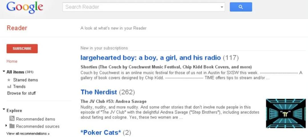 我发现,要成为Google 常见的Reader用户必须具备两个特征: