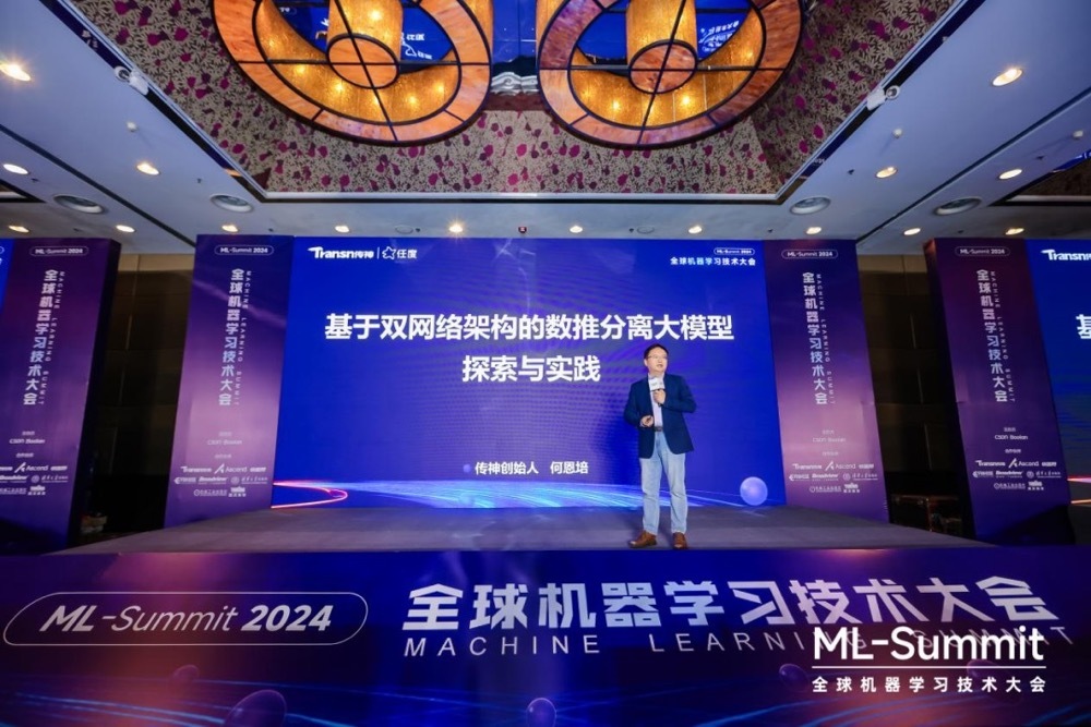 传神创始人何恩培发表主题演讲《基于双网络架构数推分离大模型的探索与实践》