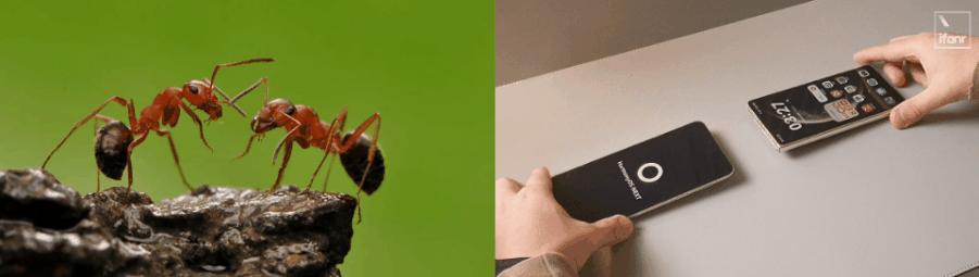 「碰一碰」就像蚂蚁用触须交换信息一样,两部手机的顶部可以轻轻触摸,分享图片、视频、WiFi 即使是你最喜欢的博主主页。