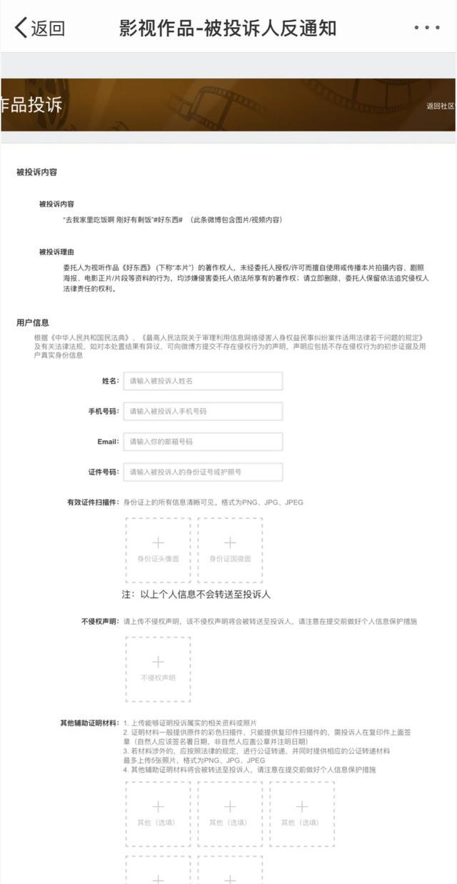 根据网友截图,该网友发布了观看《好东西》的场景,因此被《好东西》的作权人投诉。被投诉的原因是未经委托人授权 / 可以擅自使用或者传播这部电影的拍摄内容,剧照海报,整部电影 / 片段等资料的行为,均涉嫌损害委托人依法享有的着作权,请立即删除。