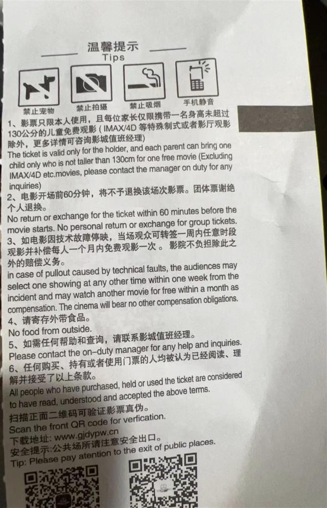 电影票根后面标有“禁止拍摄”。受访者 / 极 · 目新闻
