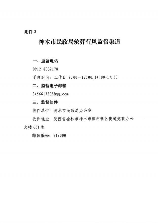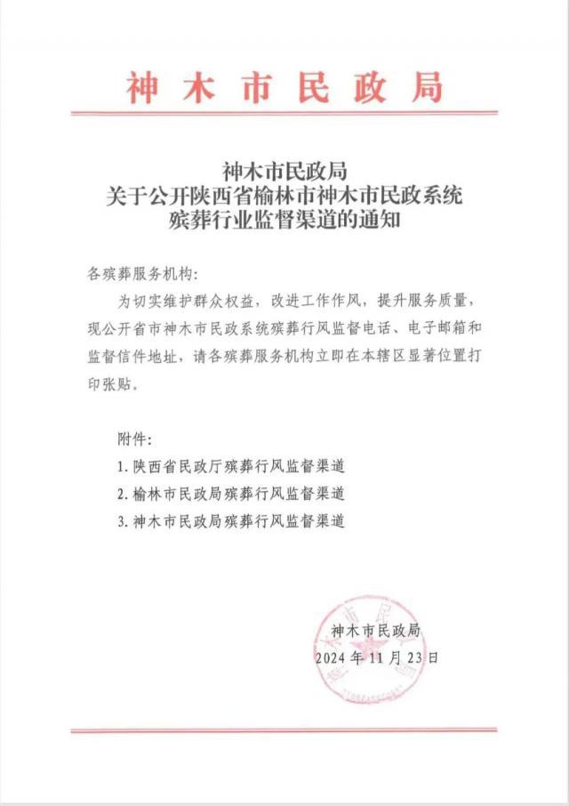 陕西省榆林市神木市民政系统殡葬行业监管渠道公开通知