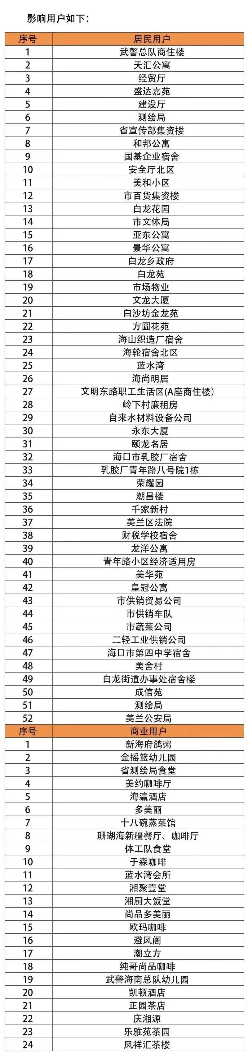 今晚,海口部分社区和商业用户将暂时停止呼吸。