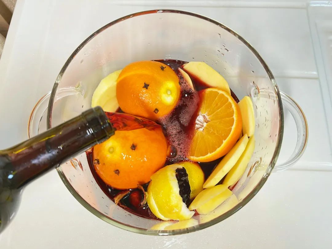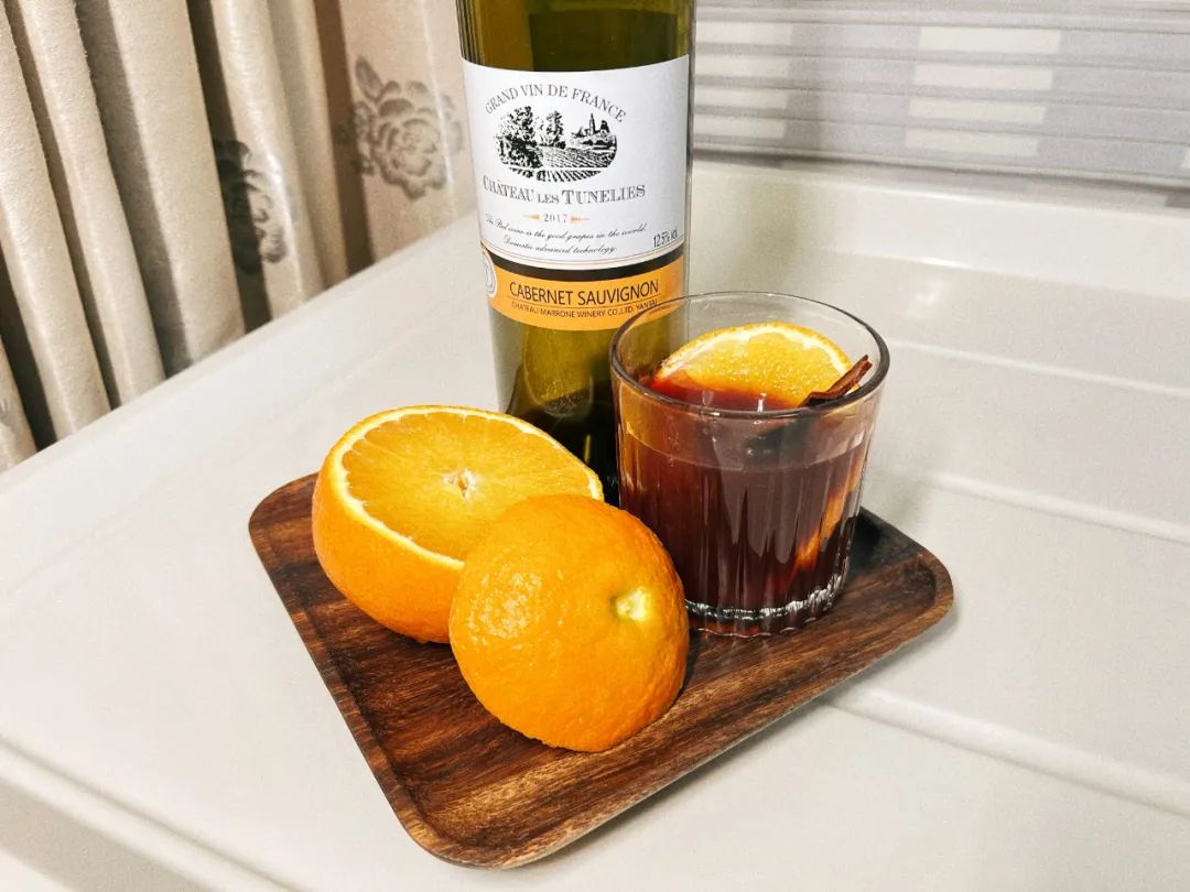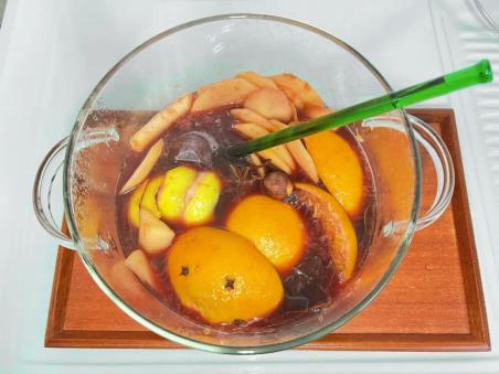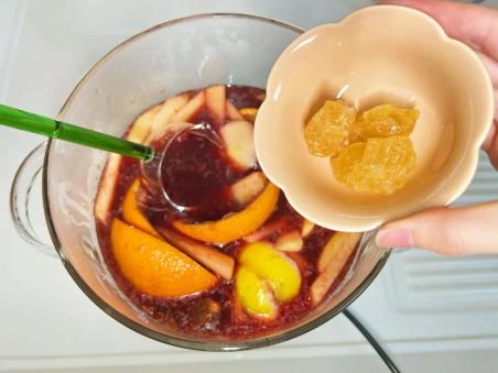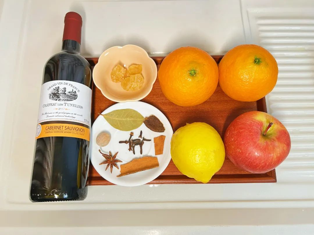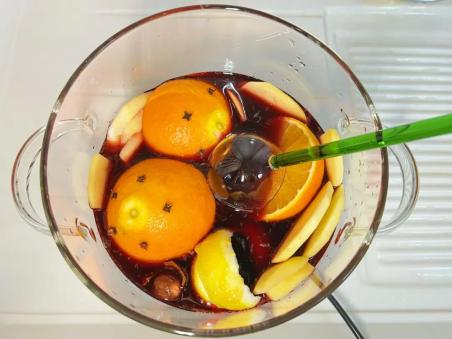 配料:干红酒,橘子,苹果,柠檬,冰糖,丁香,桂皮,八角,香叶,肉豆蔻,陈皮,