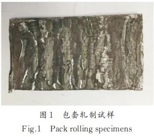 工业纯铝板选用TC4板材,质量分数为99.9%,TC4板材、Al板层数分别为13。、12层,将材料各自切割成100层。 mm×100 mm×1 经过一系列表面预处理后,mm的板材更换叠放形成层状结构,其中上下表面均为TC4板。由于Ti/Al合金塑性差,在轧制过程中容易发生局部变形,导致开裂、氧化等问题。轧制时,板材用包套包裹,然后轧制。包套材料采用304不锈钢,通过LARA系列真空电子束焊机进行封焊。