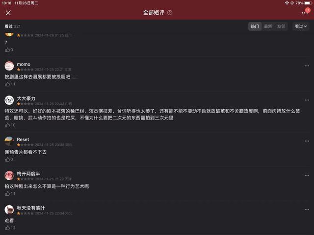不过,就是有了这样华丽的特效,开播后还是差评满满,豆瓣几乎被一星霸屏,究竟出了什么问题?