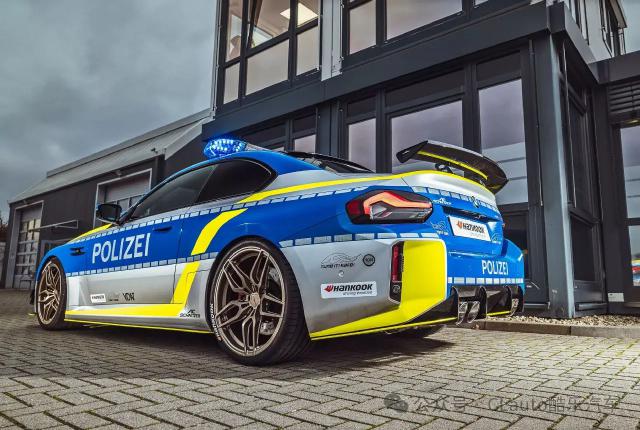 在这次活动中,最新的亮点是一辆车。 AC Schnitzer 高度定制的警用宝马 M2,它展示了一个全新的 M2 在特殊的警用涂料下,将空气动力学、底盘调节和性能升级完美结合,还配有闪动警示灯。