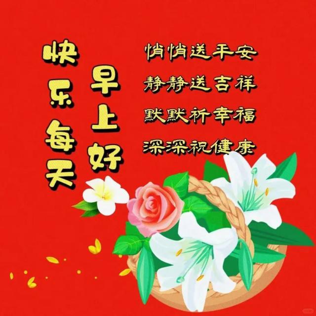 打开,充满祝福;收到,都是健康;看,都是幸福;阅读是吉祥的。早上送五好:笑心态好,动动身体棒,问候心情好,关心深厚的友谊,祝福一天比一天好,童心永不逝去!早上好,一切顺利!