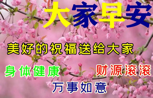 早晨是美好的,随着太阳升起,我会给你送上温暖的祝福!春天来了,花开了,祝你好运!早上好,早上好!心情像花一样灿烂,每天都很舒服!