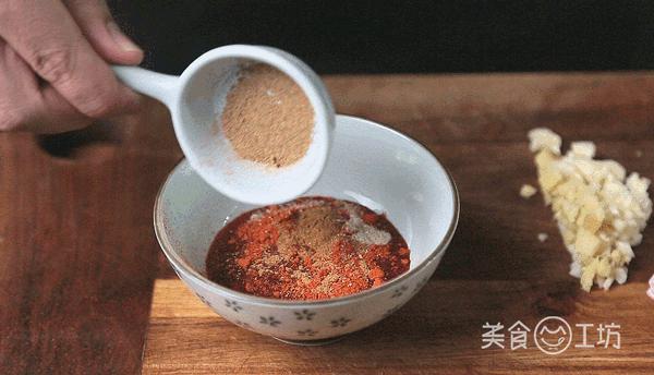 辣椒面 2 勺 / 花椒面 1 勺 / 白胡椒粉 1 勺
