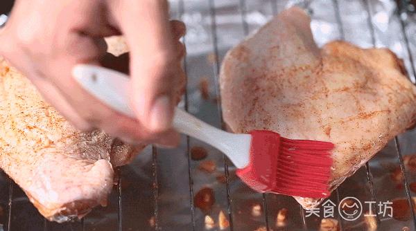 4. 2 将勺子蜂蜜和适量的水混合成蜂蜜,均匀地刷在鸭腿表面。