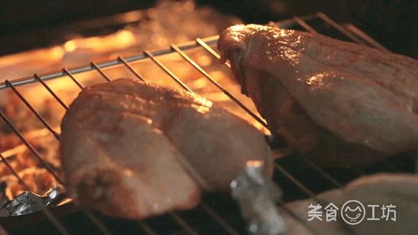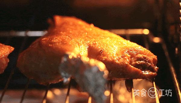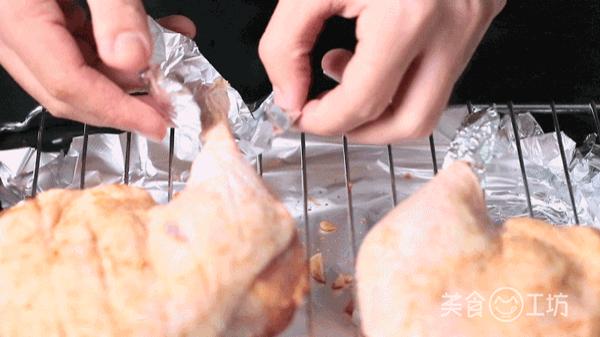 5. 放入烤箱烤 15 几分钟后取出,翻过来刷上蜂蜜,继续烤。 10 几分钟后取出,取下锡纸翻面刷蜜汁再烤。 10 分钟即可。