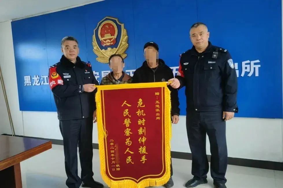 幸运的是,两位老人没有严重的问题。休养了一段时间后,王爷爷拉着石奶奶的手来到五道派出所,给了警察一面横幅。这面横幅凝聚了老人对警察的深深敬意,见证了警察在危机时刻从未放弃,传达了警察家人的炽热温度。