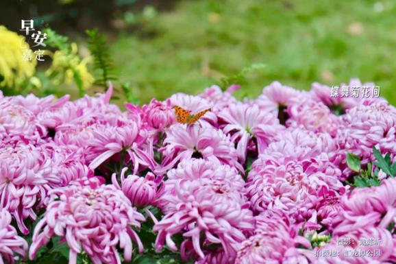 秋菊竞相绽放,吸引了五彩缤纷的蝴蝶。