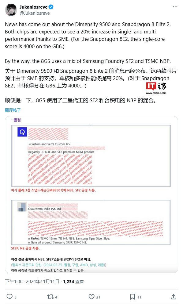 IT 家族报道,高通第二代骁龙 8 最高版本的芯片将采用新型台积电。 3nm N3P 技术,在三星良率提高到可接受水平的前提下,也有可能混合使用。 SF2 节点(也叫节点) 2nm GAA)。