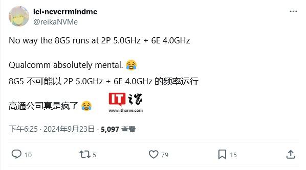 此前有报道称,高通第二代骁龙 8 最高版本的芯片将使用第一代 CPU 集群设计,依然是 2P 6E 配置,不过主频会升级到 5.0 GHz。