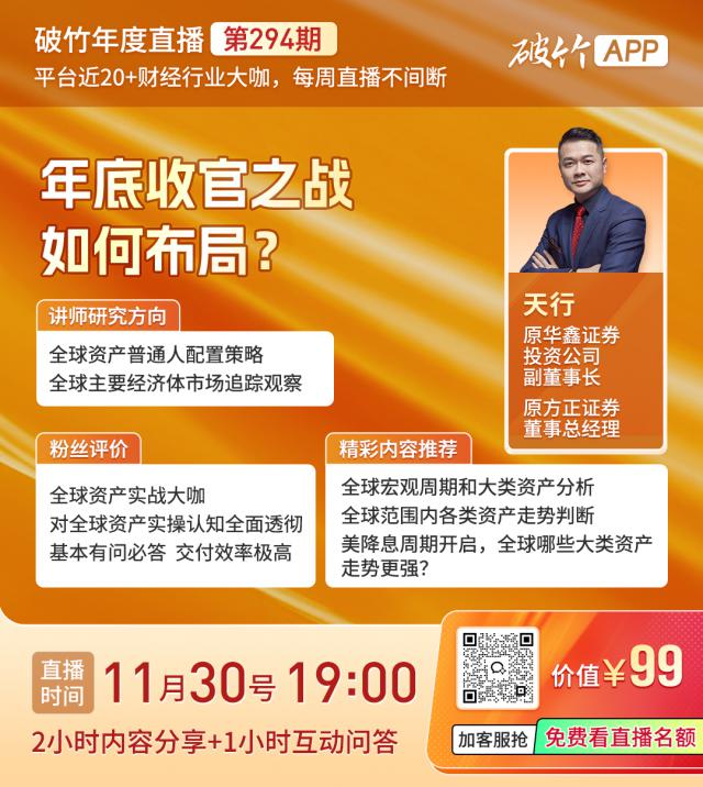 因此,今晚 7 点,在破竹直播间,我们特意邀请了全球资产配置实战大 V “天行总”亲临破竹直播间,为大家带来——