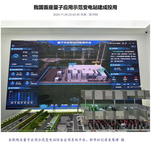 IT 世家 11 月 29 据新华社报道,日新闻,2024 今天的量子科技与工业大会(11 月 29 日)在安徽合肥举行,国家电网公司合肥候店量子应用示范变电站在本次会议上正式发布并投入使用,成为运变电站在国内首个应用程序包括量子测量、量子通信和量子计算。。