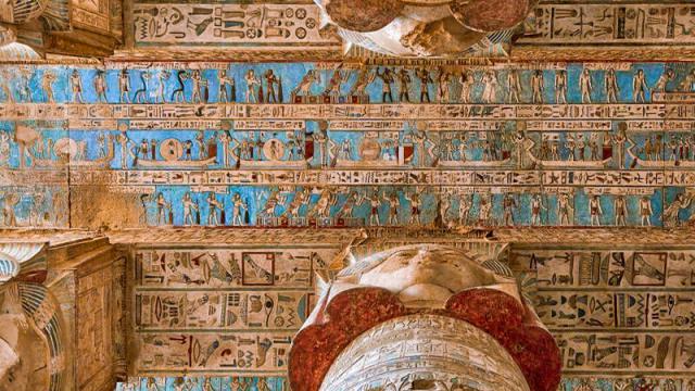 丹德拉神庙,法老时代末期精致完整,法老时代未期的杰作,因其储存状态几乎完好,告诉我们古埃及的辉煌。精美的壁画和雕塑是为数不多的仍然保存着色彩的文物。丹德拉黄道十二宫的星座图案更加精致,展现了古埃及人对天文学的深刻理解。