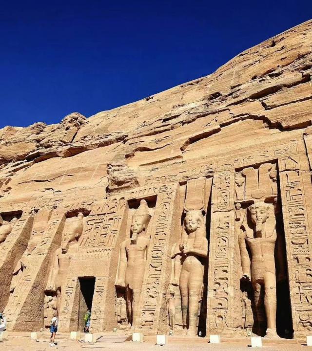 最为特别和难以到达的寺庙之一,位于阿斯旺水坝南部。 280 接近埃及和苏丹国界的公里。3200 多年前,寺庙的设计师准确运用天文学、地理学、工程学等知识,每年将寺庙建成两个特殊的日子。阳光可以从大门进入,穿过。 60 米深的寺庙,洒在深处寺庙里的神和法老石雕像上,完成了太阳崇拜的古老奇迹。因此,阿布辛贝寺庙就是“世界五大太阳崇拜起源之一”,同时也是人类历史“最大的拼图游戏”。