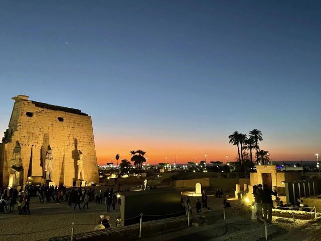 在卢克索神庙里,我们将进行一次夜游,神庙前方是斯芬克斯大路的开始,越往里走,建筑时代越古老,在暮色中显得更加巍然起敬。