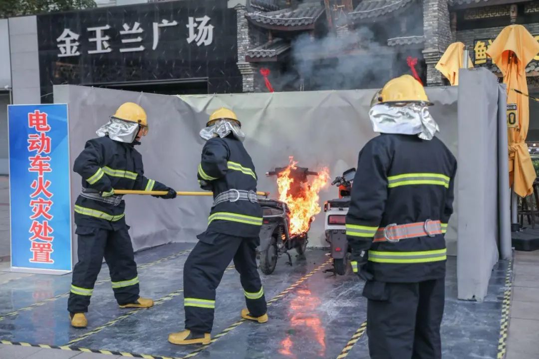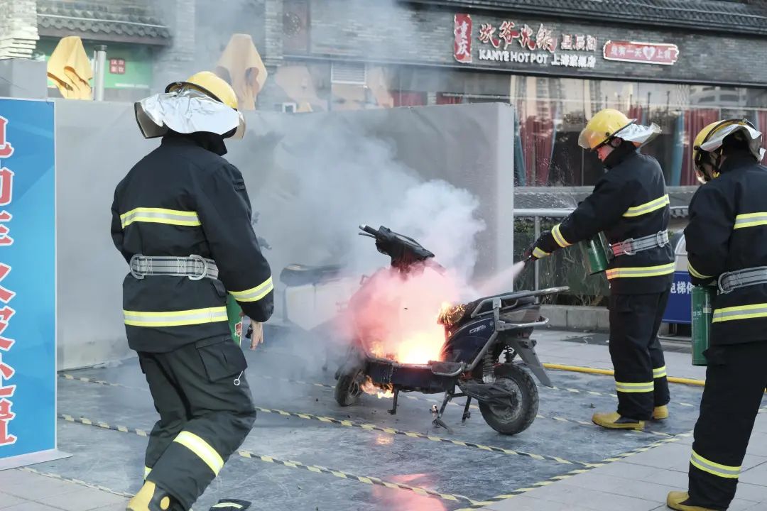 此外,打浦桥街道微型消防站的队员们还在现场进行了电动自行车火灾救火实战演练,模拟了电动自行车火灾发生时集中充电点的应急管理,为观众提供了生动的火灾应急示范。
