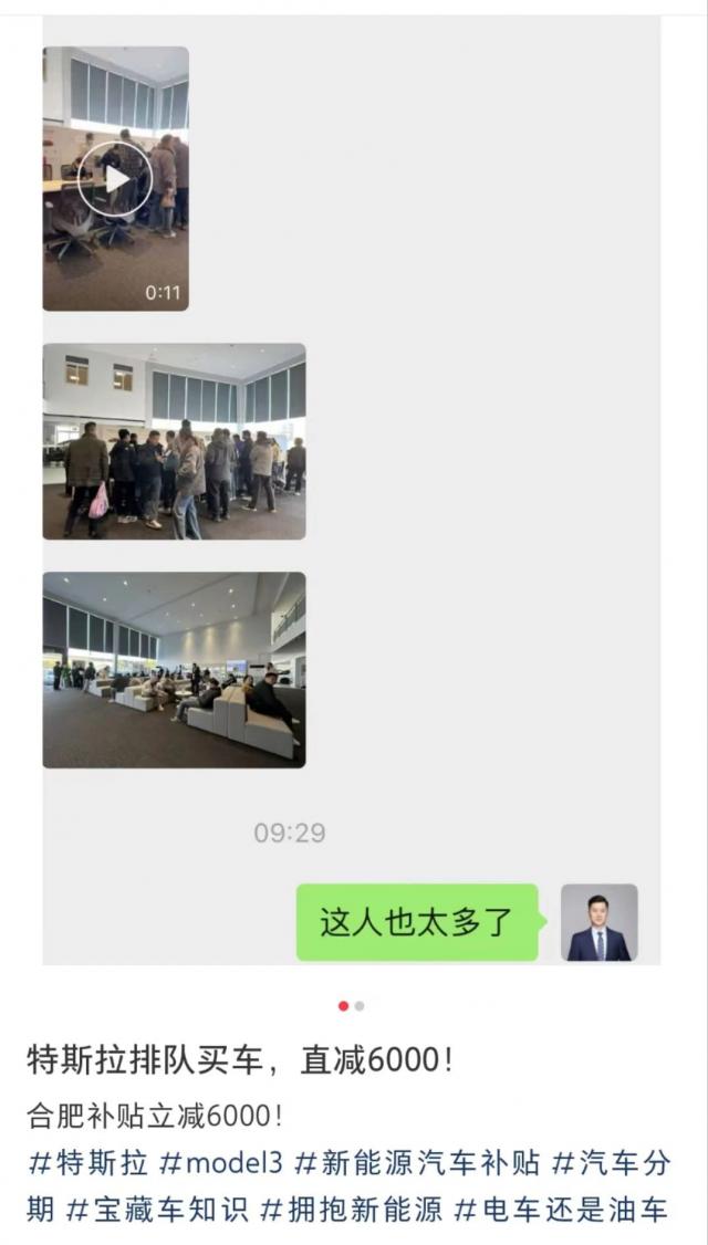 还有销售人员发帖称,合肥的特斯拉店也是人山人海。怀疑车主的消费能力被低估了。