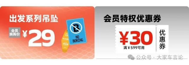 会员折扣会更大,有专属优惠。 ¥ 29 元换购出发系列挂件优惠及特权「满 ¥ 599 减 ¥ 30」优惠券。假如还没有成为会员,请尽快点击文字查看如何成为会员,可以解锁更多的品牌福利。