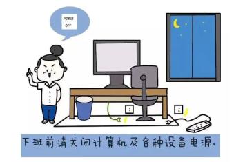 长时间离开座位,不使用电脑时,关掉电脑,减少电力消耗;下班后关掉电脑电源和排插开关。