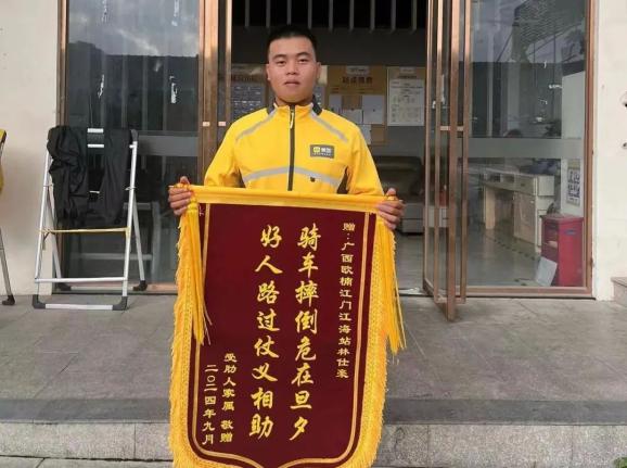 原题:“老人连人带车跌倒,江海外卖小哥果断出手…”
