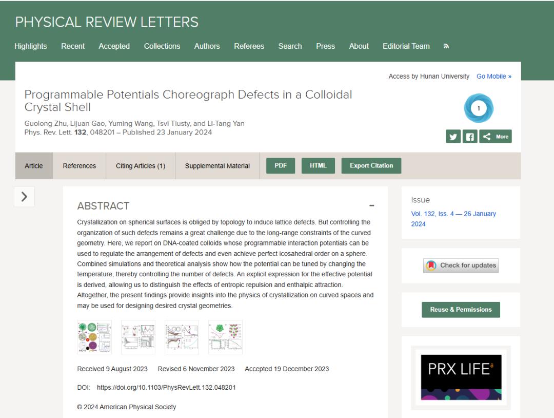 在曲面缺陷调控研究中,朱国龙副教授团队取得了新的进展,研究成果在Physicsicsic中公布。 Review 在Letters杂志上。