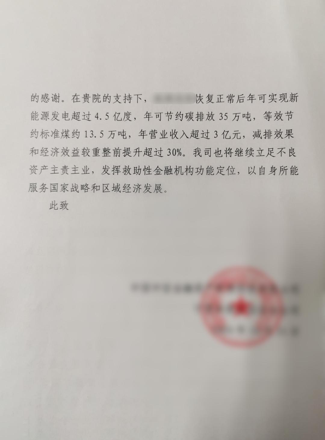 最近,一封特别的感谢信交给了银川市中级人民法院路华院长。“在A光伏发电公司破产重组期间,银川市中级人民法院始终肩负着政治责任,关注区域经济发展和人民利益,积极了解借款人公司的具体情况,充分发掘重组公司的市场价值...我公司对银川市中级人民法院办案的所有审判员表示衷心的感谢。“只字片语却充满了公司对人民法院高效处理此案的感激之情…