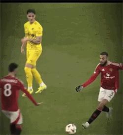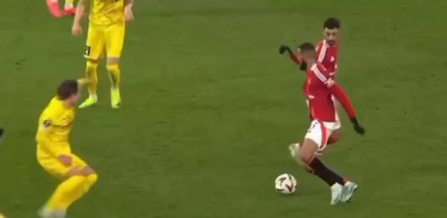 马兹拉维,一名右中卫,在上半场结束前杀入前场,在安东尼突破阻力后,刚刚渡过。 27 摩洛哥铁闸岁生日,向 1 亿欧元先生展示了如何进攻。