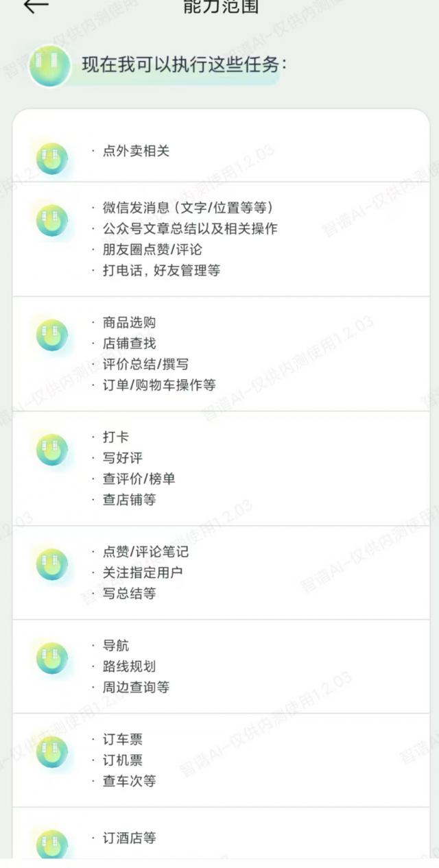 目前,AutoGLM 适用范围比较有限,需要根据手机下载。 APP 提供服务,如点外卖、微信发送信息、购买商品、导航和路线导航、预订机票和机票等。使用前提是下载微信和导航。 app、美团,淘宝,小红书等等。