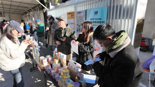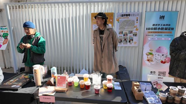 另一边,Cavern 酒吧经理马文韬从古柏编制社的摊位前买了几个手工制作的杯垫,准备放在酒吧当装饰品。古柏编制社的几位阿姨看着自己的手工制作产品,得到了时尚年轻人的认可和喜爱。