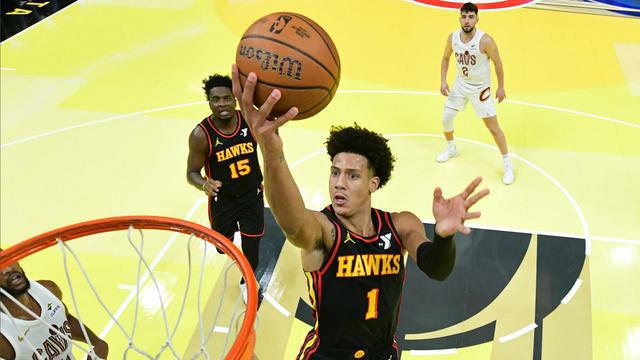 在易地的决战中,老鹰依靠篮板球的优势和出色的传球,可以内外开火,再次将差距扩大到两位数。勒维尔与加兰和莫布里携手追分,但亚特兰大的攻击势头无法阻挡。米切尔继续攻击和打铁,老鹰继续打出攻击狂潮,可以将差距扩大到 20 分数。骑士的每个部分 23 比 39 落后,第 3 节日结束后,亚特兰大领先。 18 分。