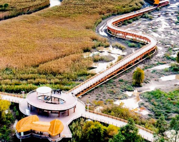 西沙明珠湖景区深秋浅冬简直美极了,随手一拍就是大片!想看看“水中森林”吗?这儿正好,高挺巍然的水杉树,都披上了深黄色的外衣,置身于这浅冬的暖色系,整个人都变得温柔起来。这是观赏杉树的最佳场所。景区还特别疏通了一条总长 2000 多米水道,沿岸主要种植旱柳、落羽杉、池杉、中山杉、重阳木等植物,勾勒出一幅幽深宁静的生态林地画轴。