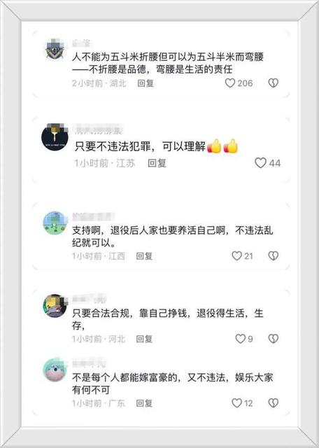 有些人认为,运动员退役后选择网红作为职业并无不妥,只要依法依规,自立更生即可。
