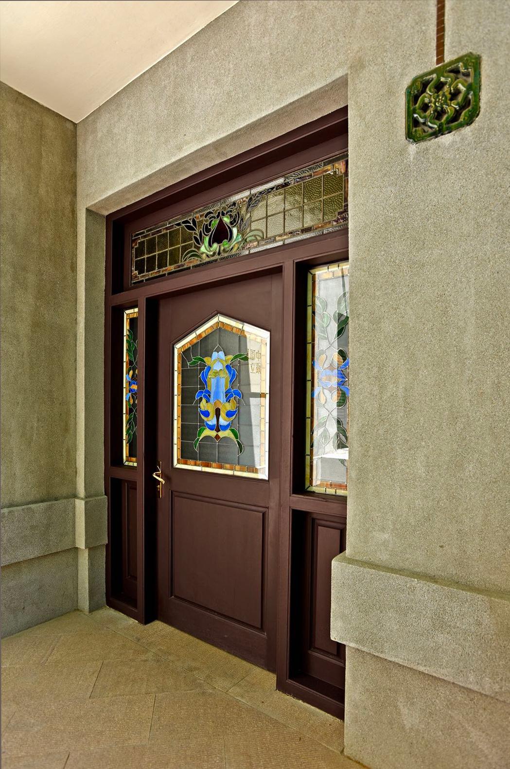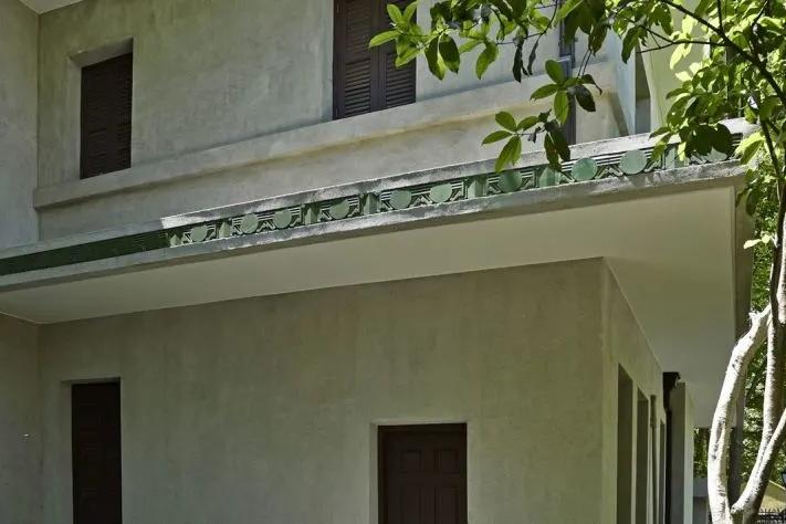 建筑物檐下采用木质嵌条和瓷砖装饰,质地丰富,雅致细致;南北两侧的一层挑檐,还有精美的浮雕装饰。