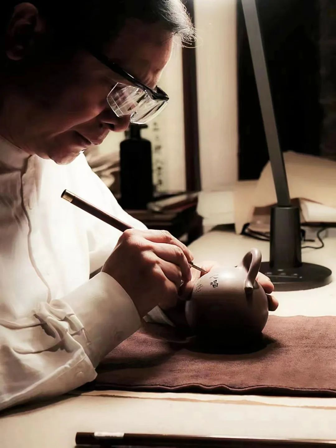 经过十多年的坚持和探索,痴迷于茶壶的张生终于再次挖掘和恢复了玉成窑茶壶的制作技巧。从泥浆、工艺、壶型、窑烧、书法雕刻等。,所有这些都是他自己制作的。他还培养和领导新手艺人,扩大传承团队,通过带徒授艺、非物质文化遗产进入学校、培训和体验,传承文人茶壶的文脉。结合清代玉成窑文人紫砂的特点,张生复制非物质文化遗产文化创作,将紫砂扩展到人文空间和生活空间,不仅面向文化世界,也面向人民。不仅有锅,还有砚台、笔洗、水盂、笔架、花盆、花瓶、小品等。