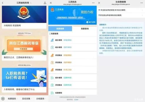 参保人员可选择“江西省税务局”微信微信官方账号、赣服通(支付宝)等多种形式支付费用。、线下窗口等方式支付费用。