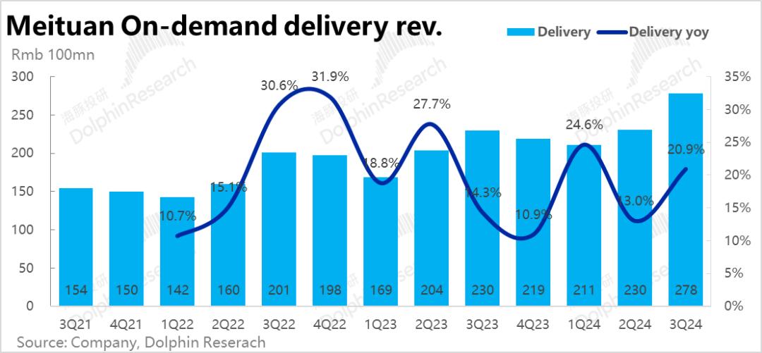营收视角,与基本环比持平的单量增速相比,,本季与上一季度相比,物流收入同比增长率从13%大幅上升至20.9%。按即分配收益/单量简单计算本季度单均配送收益已同比止跌,反上涨6%。,在这一季中,我们认为这应该是当地生活板块业绩超出预期的主要英雄(或其中一个)。