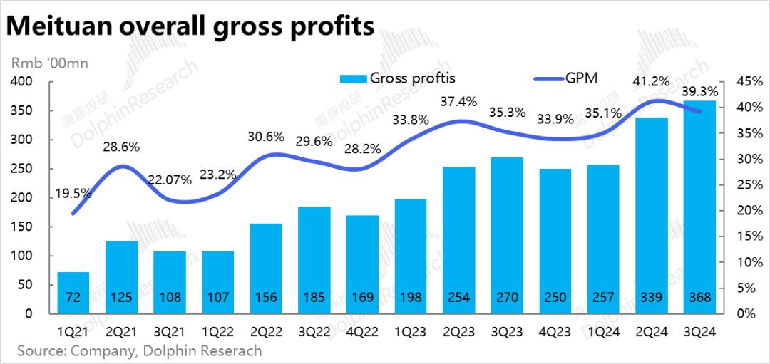 从成本和成本来看,本季度美团毛利达到368亿元,与去年同期相比,毛利率大幅上升4pct至39.3%,较上季度同比上升3.8pct。