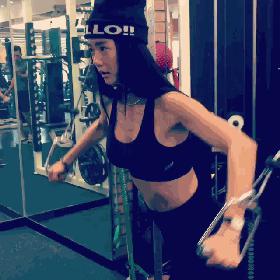 首先,用绳子拉下胸部,锻炼下胸肌。然后向后拉,锻炼腿部和臀部。还有宽握背阔肌下拉,锻炼背阔肌、上背、中背。不要以为这就结束了。这只是她的热身。她还有更换曲膝转身、重量俄罗斯转身、侧睡提臀、开合跳、简单波比跳、简单半蹲、负重深蹲、箭步蹲等等。这个训练量看起来很累。但正是这些训练让李成敏的身材虽然苗条,但并没有失去力量感。