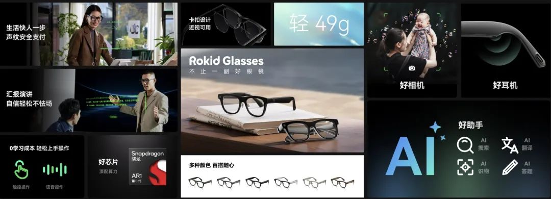 根据目前披露的信息,Rokid是小米、雷鸟、Meta和谷歌的AI眼镜项目。 Glasses或者小AI眼镜的方法。