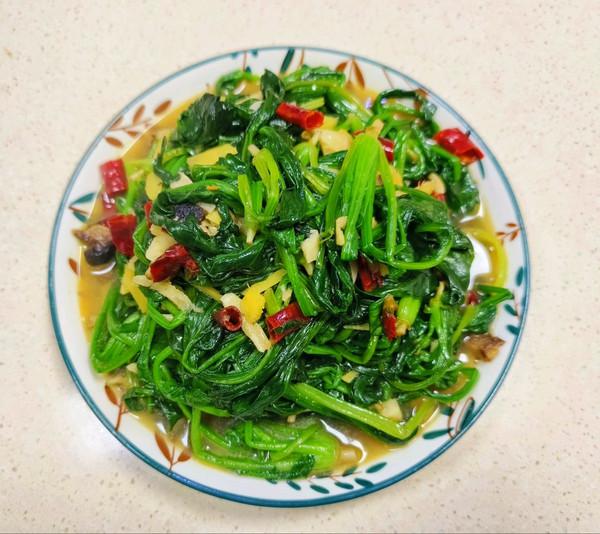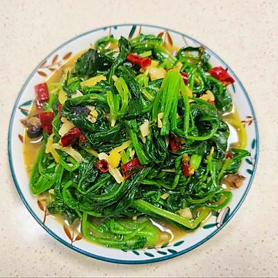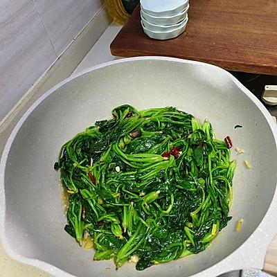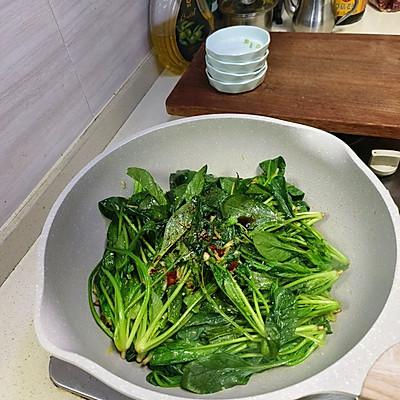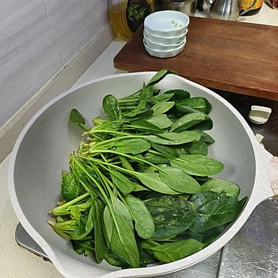 4、炒成段生就可以了,不要炒太久(我是大火。 2 分钟),具体时间要根据你菠菜的大小来调整。