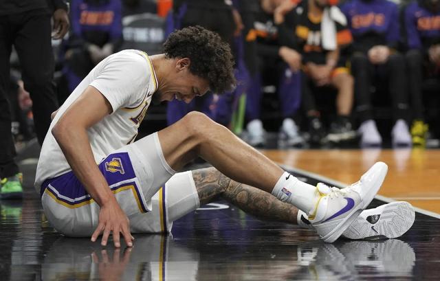 所以,这个故事的主角何许人也!他是目前洛杉矶湖人队的头号替补中锋贾克森。 - 海斯。此前在湖人 100-127 在不敌太阳比赛的最后一分钟,场上发生了让湖人队痛心疾首的一幕!在接到队友传球后,他们的替补中锋海斯面对气体防守的篮下,他立刻就是一记大力灌篮暴扣。但是在落地的那一刻,海斯露出了极其痛苦的表情,立刻抱住了脚踝。当他试图用双手站在地上时,海斯被队友扶回了更衣室!随后,湖人队宣布海斯的脚踝伤势再次恶化,这一次将不再回归。