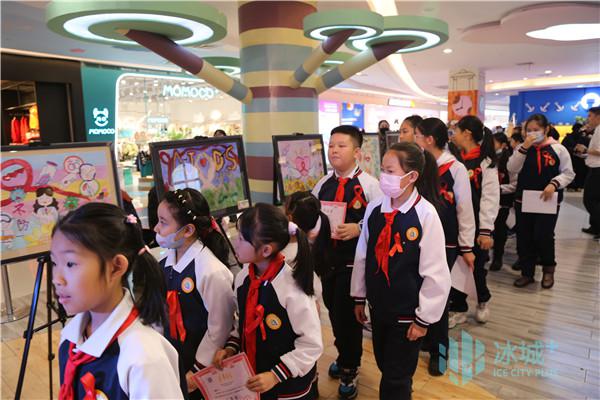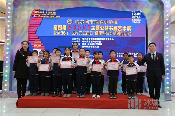 12 月 16 第一天,哈尔滨市铁岭小学第四届主题公益书画艺术展暨第四届“飞红丝带” 36 百盛哈尔滨太平桥店举办了“世界艾滋病日”健康科普公益实践活动。