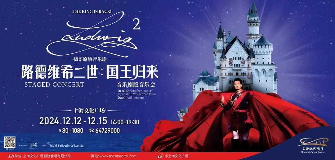 作为今年上海文化广场德国音乐剧系列的重点杰作,音乐剧版《路德维希二世:国王归来》音乐会只有6场。这也是文化广场十年来第一次引进德国本地制作的音乐剧,扩大了文化广场多年来“为观众选择戏剧”的国际地图。